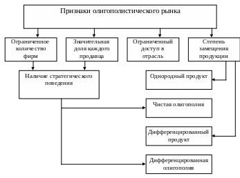Олигополистический рынок. Олигополия — это такая рыночная структура, при которой существует несколько продавцов, доля каждого из которых настолько велика в общих продажах на рынке, что изменение в количестве предлагаемой продукции каждого из продавцов ведет к изменению цены.