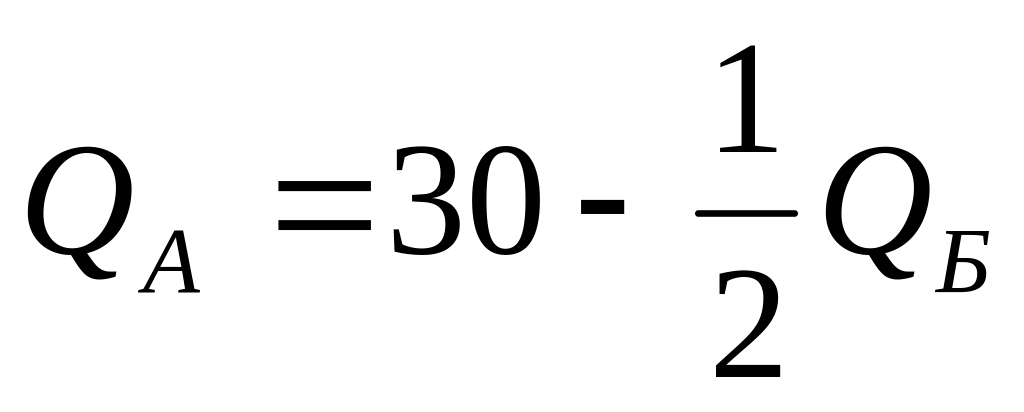 Теперь, поскольку мы предположили, что предельные издержки равны нулю, решая уравнение относительно QА, получим кривую реакции фирмы А: