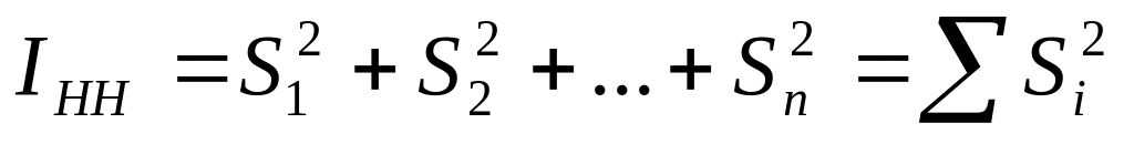 Для расчета индекса индивидуальные доли рынка каждой фирмы в виде дробей должны быть возведены в квадрат. Индекс Херфиндаля — Хиршмана IHH получается сложением всех этих квадратов, т. Е.