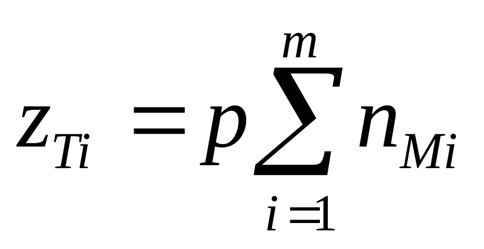 Технологические заделы zT — это заделы на рабочих местах. Они определяются количеством предметов труда, находящихся на всех операциях поточной линии с учетом числа рабочих мест на каждой операции nMi. При поштучной передаче предметов труда с операции на операцию технологический задел