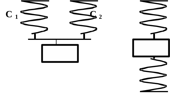 Существуют два основных типа соединения пружин: последовательный и параллельный. Последовательный способ соединения пружин представлен на рис.3.8.