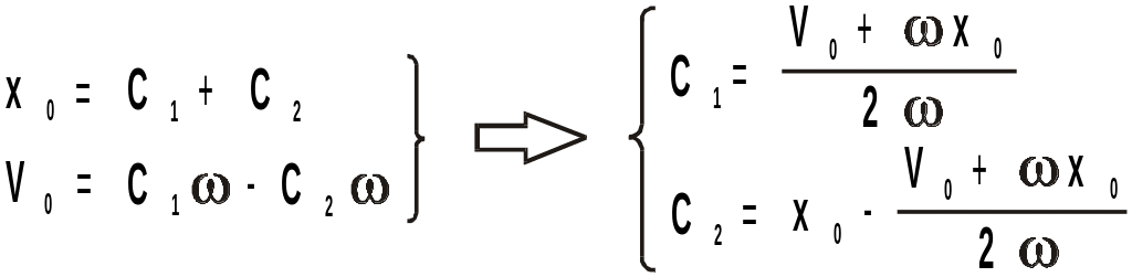 Подставив начальные условия в полученные выше выражения, получим: