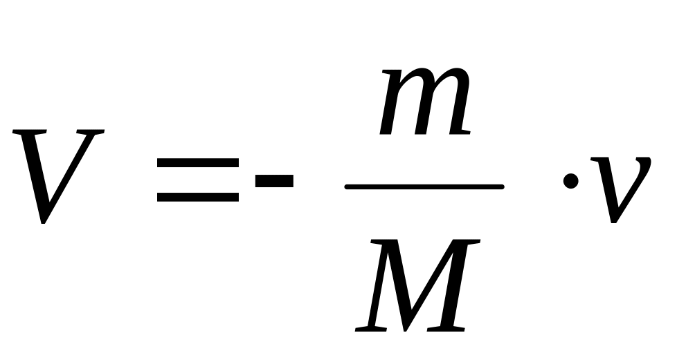 Условие задачи. Из орудия, масса которого М, вылетает в горизонтальном направлении снаряд массы m со скоростью v. Найти скорость V орудия после выстрела.