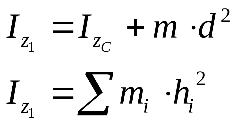 Из формулы Гюйгенса видно, что при удалении оси Z1 от оси Z в3уличина момента инерции возрастает. Следовательно, из всех осей данного направления наименьший момент инерции будет относительно оси проходящий через центр масс.