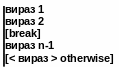 Зауваження. Інструкція у квадратних дужках [< вираз > otherwise] може бути відсутня. В умовному операторі if може використовуватись оператор break для дострокового виходу з блоку.