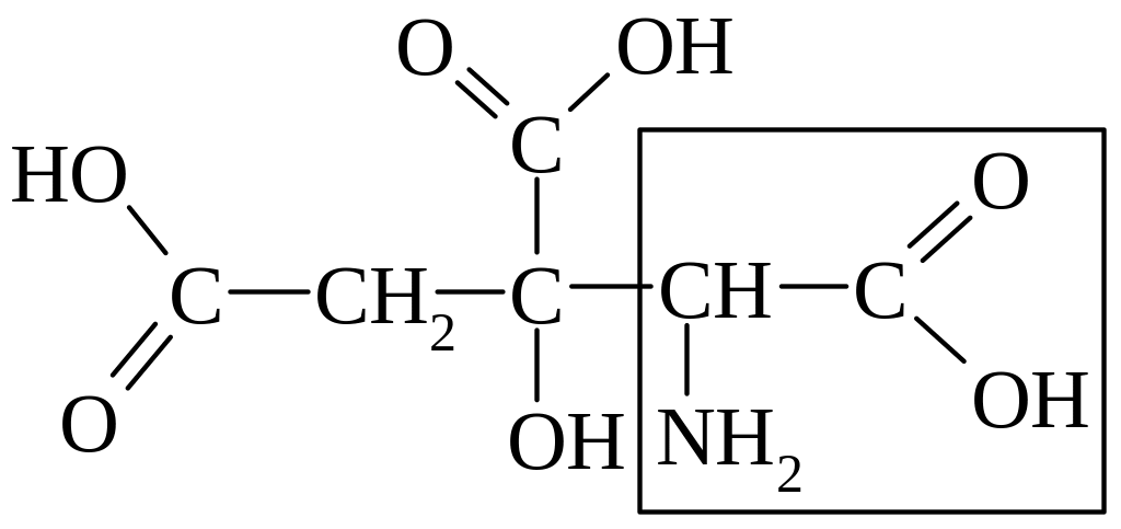 Амінолимонна кислота2, ‑аміно-β‑гідрокси-‑карбоксиглутарова кислота |
