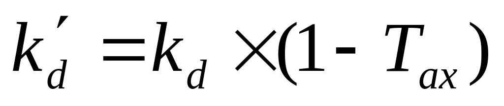 Посленалоговая стоимость долга (after-tax cost of debt) (k΄d) равна номинальной процентной ставке по долгу (kd) минус величину средств, сэкономленных за счет уменьшения налоговых платежей (1-Tax), т.е.