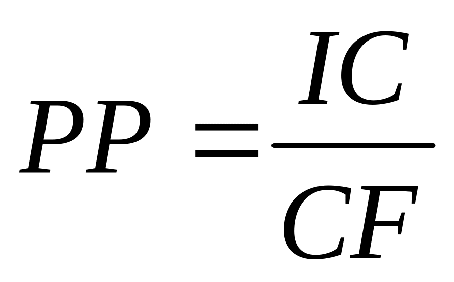 Под сроком окупаемости инвестиции (PP) понимается критерий, применяемый для оценки инвестиционных проектов и предусматривающий расчет числа базовых периодов, за которое произойдет возмещение сделанных инвестиционных расходов без учета фактора времени. Этот метод, являющийся одним из самых простых и широко распространенных в мировой учетно-аналитической практике, не предполагает временной упорядоченности денежных поступлений.