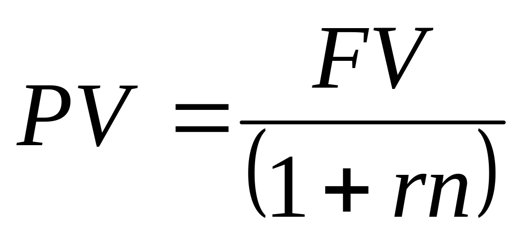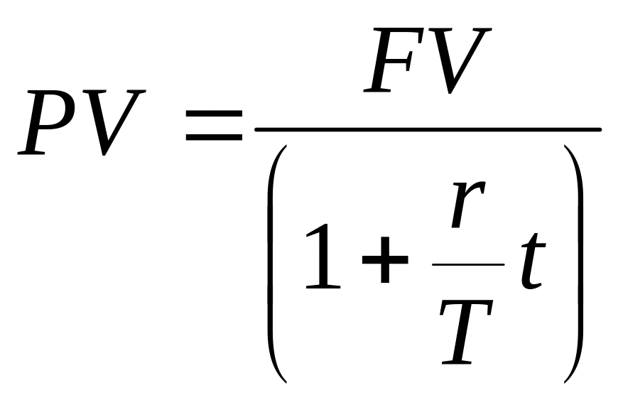 Дисконтирование (встречается название математическое дисконтирование) предполагает, что в качестве нормы приведения используют ставку r , применяемую при наращении. Т.о. математическое дисконтирование представляет собой задачу, обратную наращению (см. выше) и сводится к определению PV по известным значениям FV, r, n .