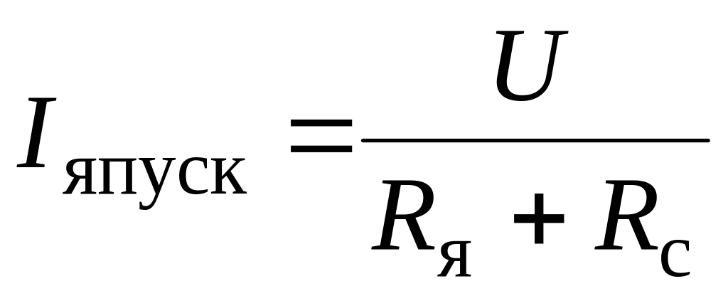 В момент пуска двигателя n = 0 и Ея = 0, следовательно, пусковой ток при прямом включении двигателя в сеть постоянного тока определяется равенством