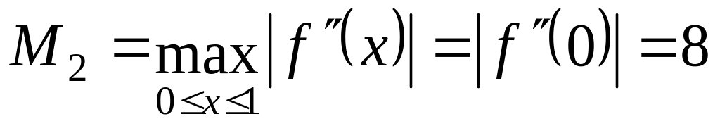 Выберем формулу для приближенного вычисления заданного определенного интеграла. Для чего найдем по формулам (9.4), (9.6), (9.10) число n точек разбиения отрезка [0,1] на частичные, которые обеспечат требуемую точность при вычислении по формулам прямоугольников, трапеций и парабол соответственно. А затем остановимся на той из приближенных формул, для которой число n будет наименьшим.