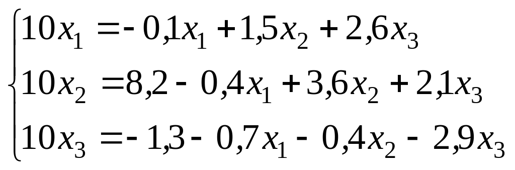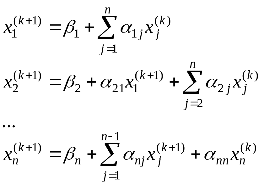 Таким образом, предполагая, что k приближение корней хki известно, по методу Зейделя строим (k + 1) приближение
