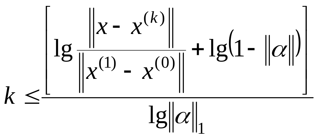 где xi – точное значение корней линейной системы, xi(k) – k приближение, вычисленное по методу Зейделя. Тогда оценка погрешности этого метода делается по формуле