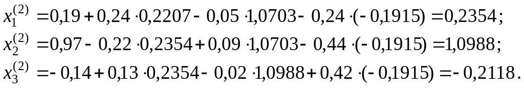 Полученные первые приближения х1(1) и х2(1) подставляем в третье уравнение системы (4.1)