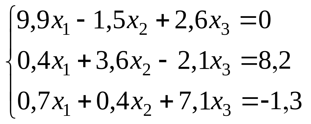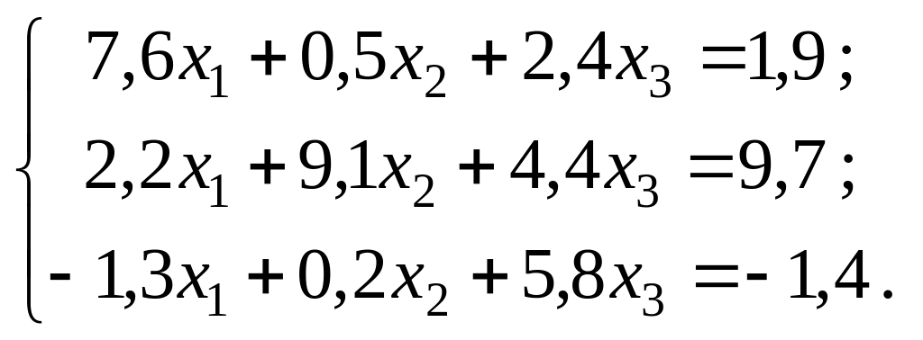 Пример. Подсчитать, сколько итераций по методу Зейделя необходимо выполнить, чтобы с точностью до 10-4 найти корни системы.