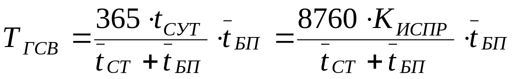 Выразив значение ТПИ через годовой налет ТГС и коэффициент удельных простоев в исправном состоянии КПИ и заменив (8760 – ТПТ) на 8760 КИСПР (см. формулу 3.1), получим