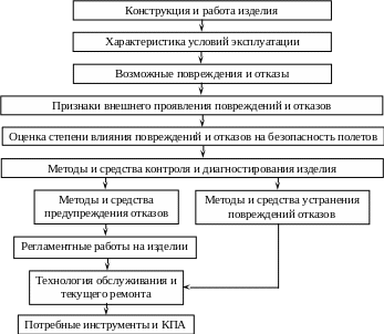Регламент технического обслуживания разрабатывается специалистами конструкторского бюро – разработчика ЛА в процессе его создания в полном соответствии с программой ТО и Р. При разработке первоначального регламента используются обобщенные материалы по опыту эксплуатации аналогичных типов ЛА (перечень работ и периодичность их выполнения, статистика характерных неисправностей и повреждений по системам, частота их появления и т.д.), учитываются специфические особенности разрабатываемого изделия (особенности конструкции, условия эксплуатации), а также результаты стендовых и лабораторных испытаний и другие исходные данные (рис. 2.5).