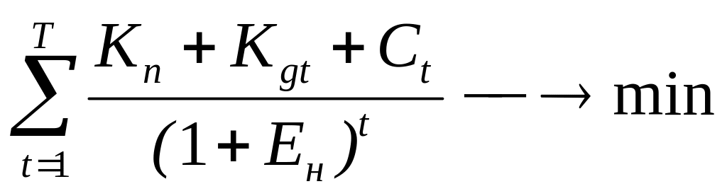 Если проводятся мероприятия, требующие длительного срока реализации капитальных вложений (лесовосстановление, рекультивация земель и т.п.), а также изменения во времени эксплуатационных (текущих) расходов, тогда предпочтительный вариант определятся по формуле