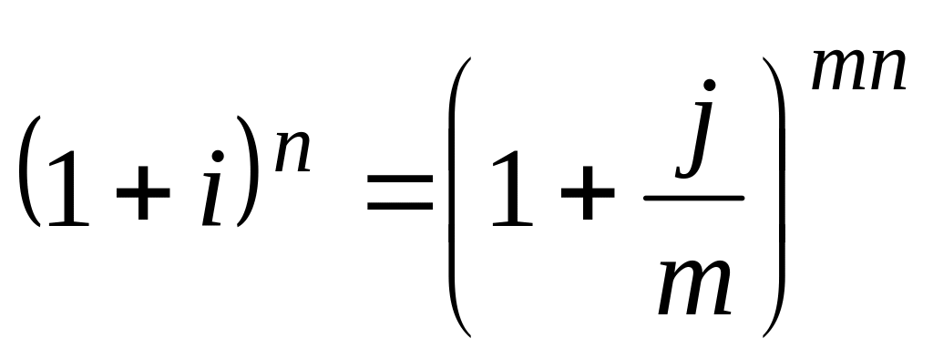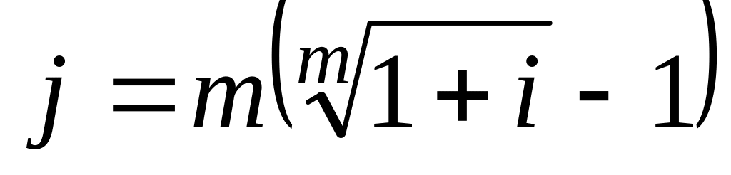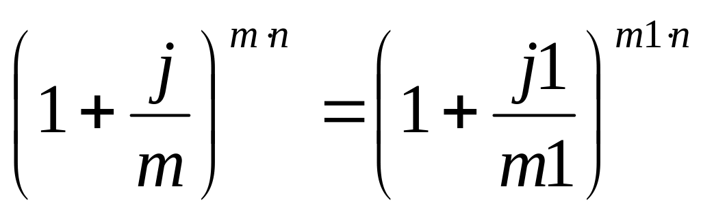 Решение: обозначим через j номинальную ставку с начислением процентов m раз в год, через j1 номинальную ставку с начислением процентов m1 раз в год.