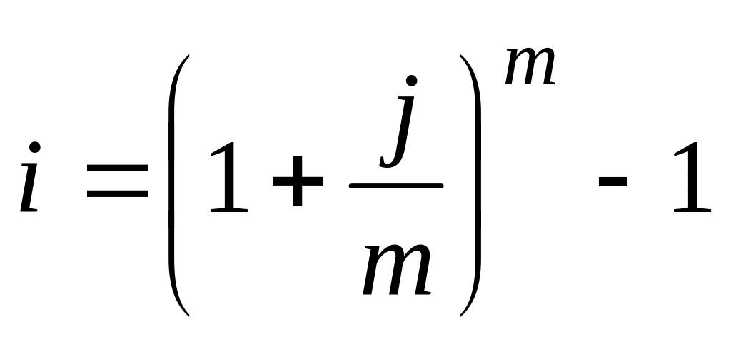 Обозначим эффективную ставку через i. По определению множители наращения по двум видам ставок (эффективной и номинальной при m-разовом начислении) должны быть равны друг другу.