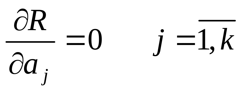 Условием существования экстремума функции нескольких переменных является равенство нулю частных производных по каждой из переменных. Поэтому для приведения системы (7) к виду, удобному для решения, необходимо найти частные производные функции R по каждой из переменных a1, . . . , ak: