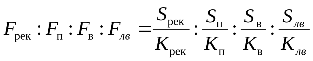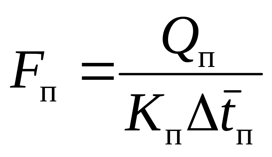 Площади поверхностей теплопередач в секциях рекуперации Fрек, м2 , водяного охлаждения Fв, м2, и охлаждения ледяной водой Fлв, м2, рассчитаются исходя из соотношения: