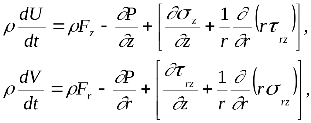 где U, V – составляющие скорости по осям z и r соответственно; формулы для напряжений вязкости имеют вид: