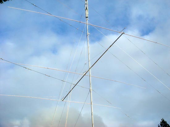 Чем выше ярус растяжек, тем меньше расстояние между растяжками и мачтой, заводить элементы, не поворачивая антенну в вертикальной плоскости становится труднее. Так что располагайте элементы под такими углами, которые обеспечат минимальные усилия по подъему. Собственно, я так и делал, как увидите далее в статье, все отлично получилось с обеими антеннами.
