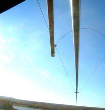 Антенна над первым ярусом растяжек. Если интересно увидеть детали — щелкните по картинке или здесь.