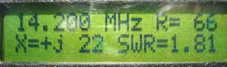 Диапазон 20 м показал другие результаты. Здесь длина элементов рассчитана верно. Изменяю расстояние между витками катушки, подгоняю вх. сопротивление и минимальный КСВ. Витки катушки почти вплотную, межвитковое расстояние составило 2-3 мм. Изменение КСВ и сопротивления по диапазону уже значительно, смотрите сами. Еще раз повторюсь, меня интересует телеграфные участки, поэтому настройку провожу именно для них.