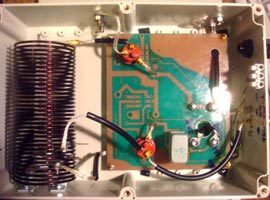 Для подключения ВЧ-кабеля разъем SO-239 выведен наружу, подсоединяю к нему кабель и в качестве герметика использую изоленту 3М (либо Folsen). Я уже отмечал, что эта изолента эластичная, хорошо прилипает, копирует рельеф и не мажется как герметик, именно по этому использую ее. В случае вскрытия разъема, герметик нужно отскабливать или отмывать специальным раствором, изолента в этом смысле проще, не оставляет следов. Для согласования участков CW и SSB диапазона 80 м, имеются два раздельных переменных конденсатора, оси роторов выведены вниз.