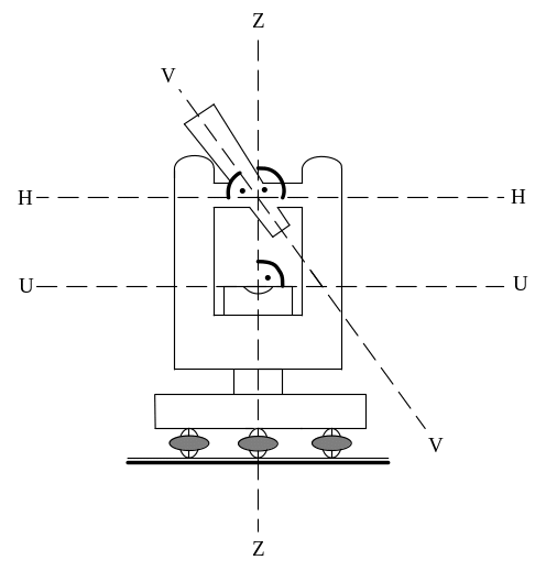 Умова перевірки. Вісь циліндричного рівня UU повинна бути перпендикулярною до осі обертання теодоліта ZZ.