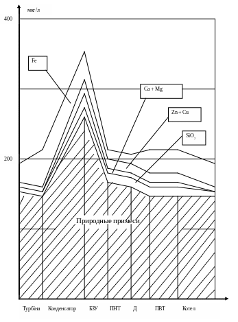 - •Например, имеются такие данные о влиянии аминов на содержание железа. При проведении опытно-промышленных испытаний этаноламинового вхр-2 на энергоблоке №3 аэс Богунице с ввэр-440 достигнуто