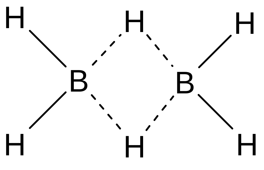 Атомы бора в молекулах бороводородов связаны друг с другом водородными «мостиками», на пример: