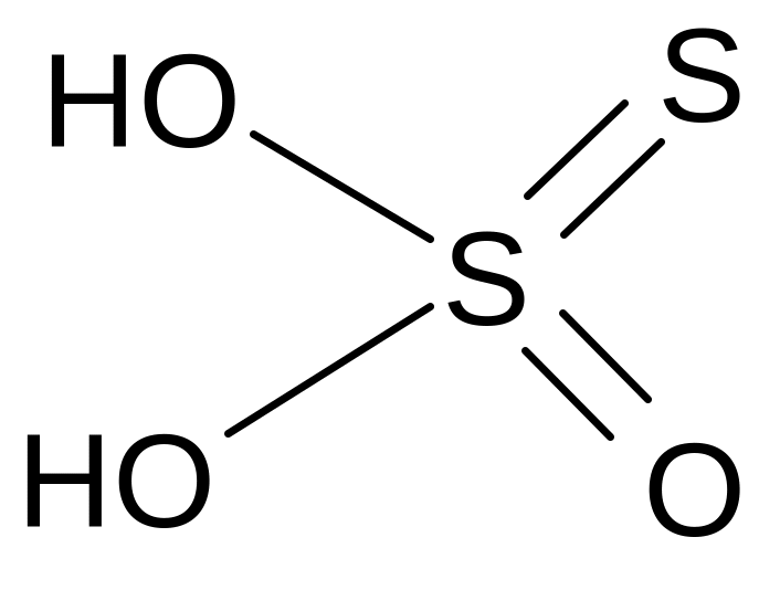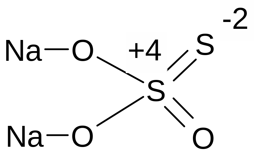 Тиосерная кислота (H2S2O3) – неустойчива, при комнатной температуре распадается. Соли более устойчивы, из них наиболее употребителен тиосульфат натрия Na2S2O3•5H2O. При добавлении к раствору тиосульфата натрия какой-нибудь кислоты, появляется запах SO2, затем раствор мутнеет от выделившейся серы (на этом основано лечение чесотки).