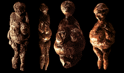 Свыше ста пятидесяти палеолитических женских статуэток обнаружено в разных странах, причем значительная часть в России. В подавляющем большинстве лица их лишь намечены, зато отдельные части тела очень конкретны и резко преувеличены. Не грацию, не стройность и негу юного женского тела хотел здесь передать первобытный художник с впечатлительной душой, а - строгой геометричностью линий и объемов - силу, грузную, животворящую силу родоначальницы и охранительницы очага.