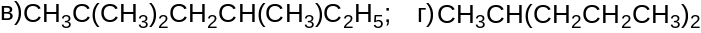 Напишите формулы следующих соединений: а) 2-метилпропан; б) 5-метил-3,4-диэтилоктан; в) 5-метил-4-пропилнонан; г) 2-метилпен-тан; д) 3-этилгексан; е) 2-метил-4-этилгексан; ж) 2,2-диметилпентан; з) 2,2,4-триметилпентан (изооктан); и) 3,4-диметил-4-этилгептан; к) 2,4,6-триметил-3,5-диэтилгептан.