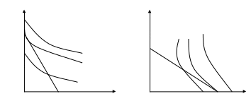 Бувають випадки, коли бюджетна лінія і крива байдужості мають різний кут нахилу на протязі всієї їх довжини і точки їх дотику взагалі немає. Тоді оптимальне рішення визначається положенням, найбільш близьким до дотику, і називається кутовим. Воно визначається перетином бюджетної прямої, однієї з осей координат і кривої байдужості (рис. 10).