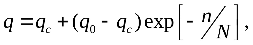 где ni – количество предъявленных оператору сигналов в i – ом опыте; mi – количество ошибок оператора в этом опыте. В процессе обучения частота ошибок обычно уменьшается. Оператор считается обученным, если частота ошибок уменьшилась до установившегося значения qc. Процесс обучения достаточно хорошо аппроксимируется экспоненциальной зависимостью