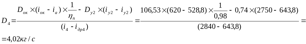 Dотб1= D1 – αу1* Dт=4,52-0,00427*126,6=3,98 кг/с.
