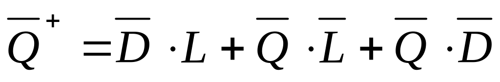 Триггер типа D-L имеет два информационных входа: D (Data) и L (Load – загрузка), выходной сигнал которого принимает значение D при L=1, а при L=0 состояние триггера сохраняется независимо от значения D. Из таблицы истинности (Рис. 3.5а) с помощью карты Карно получим функцию переходов D-L триггера: