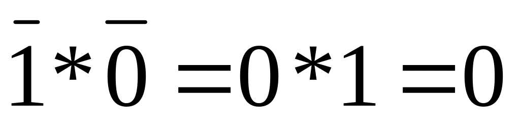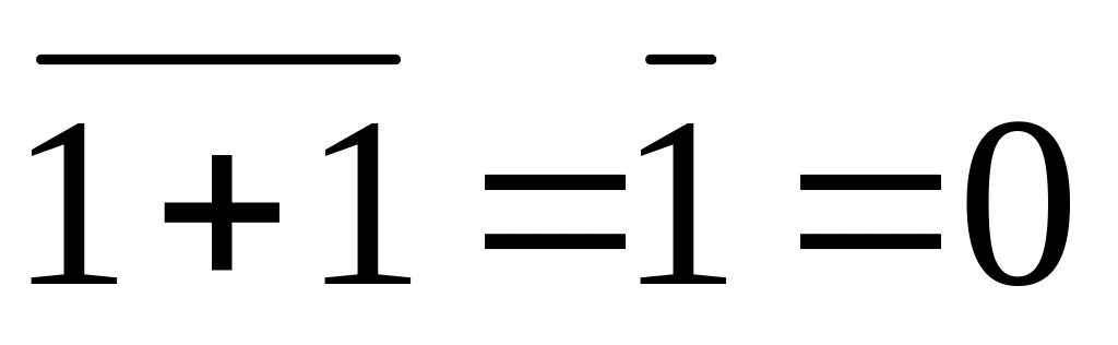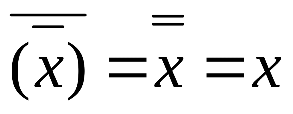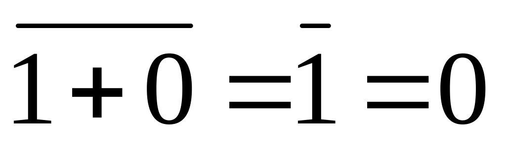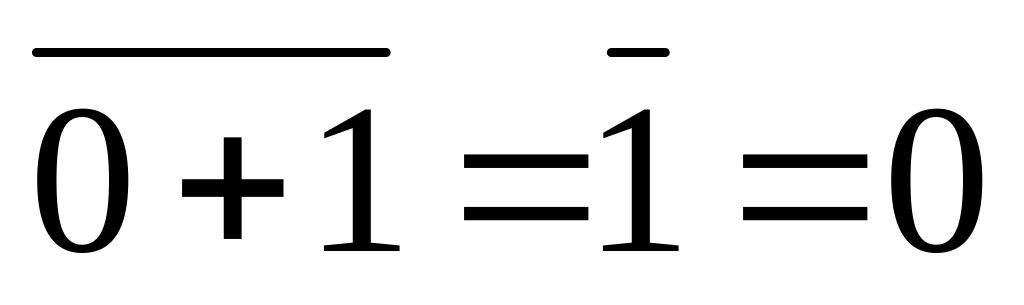 отрицание, инверсия, операция НЕ, обозначается чертой над переменной, или над элементами 0 и 1, или над операциями с охватом всех переменных входящих в операцию (