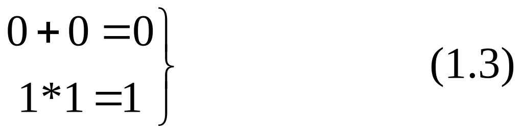 Формула (1.1) – утверждает, что в алгебре логики рассматриваются только двоичные переменные.