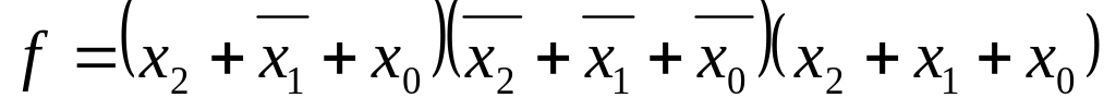 Макстерм: - это дизъюнкция всех переменных, которые входят в прямом виде, если значение данной переменной в точке области определения равно 0, либо в инверсном виде, если значение переменной равно 1.
