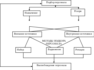 - методов подбора персонала (отбор, выдвижение, ротация);