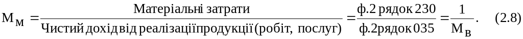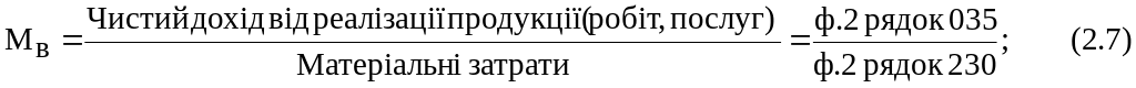Показник матеріаловіддачі показує скільки грн. доходу від реалізації продукції отримано з 1 грн. використаних у виробництві матеріальних ресурсів.