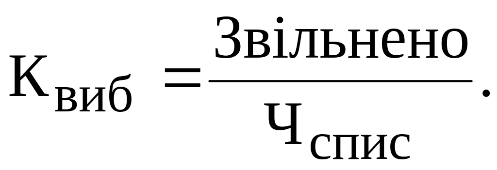 де КЗ кількість робітників, що звільнилися за власним бажанням або через порушення трудової дисципліни (з форми 3-ПВ). Бажано вивчити конкретні причини звільнення за власним бажанням. За високої плинності кадрів визначають її негативні наслідки на основні показники підприємства.