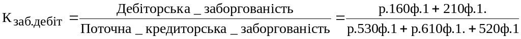 5. Коефіцієнт покриття заборгованості за рахунок дебіторів: