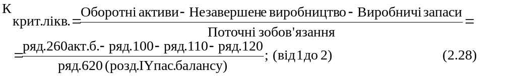 Уточнений коефіцієнт покриття ( коефіцієнт критичної ліквідності):