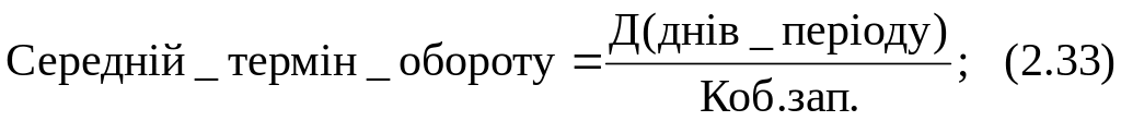 2). Тривалість 1-го обороту в днях визначається як співвідношення кількості днів (Д) у розрахунковому періоді і кількості оборотів обігових коштів за той самий період (тобто коефіцієнту оборотності).